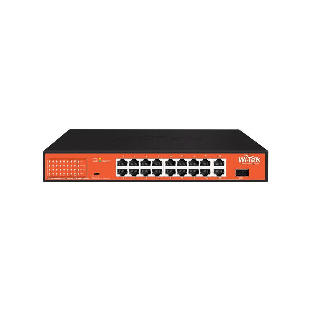 100M switch - 16x RJ45 PoE + 1x Combo SFP + 1x Gb RJ45 uplink, funkce Watchdog pro kontrolu a restart připojených zařízení
