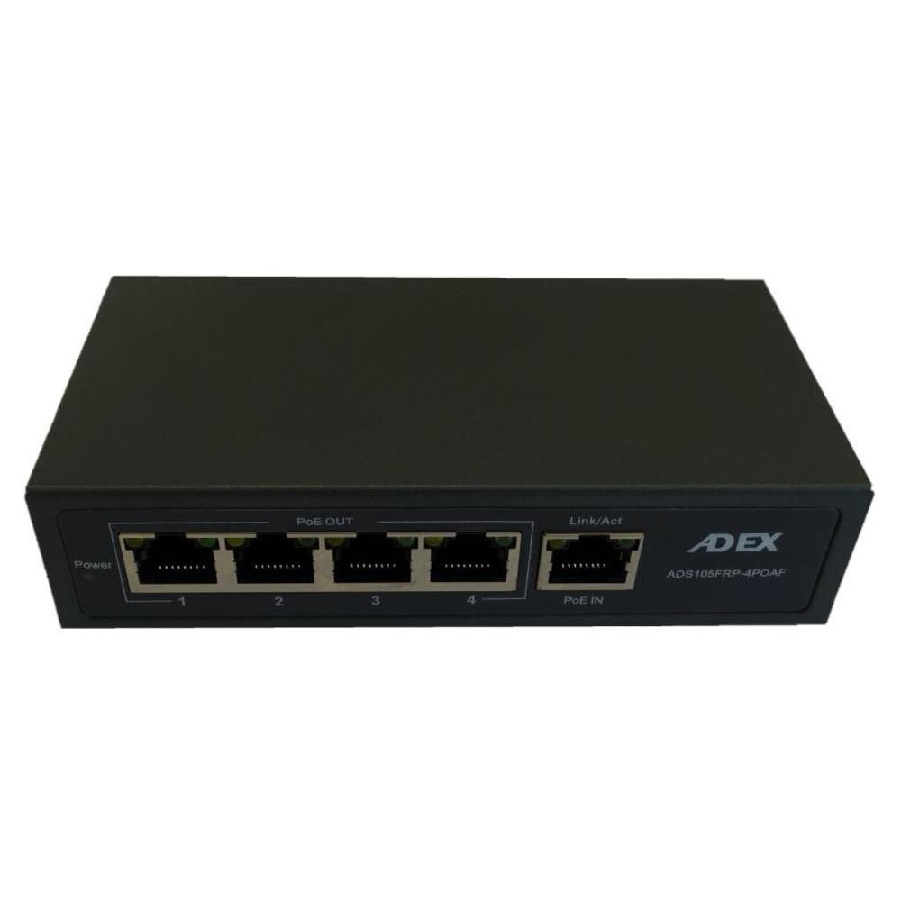 Switch disponuje pěti 100M porty RJ45 z nichž porty 1-4 podporují PoE Out. Port číslo 5 slouží pro PoE In (pasivní).