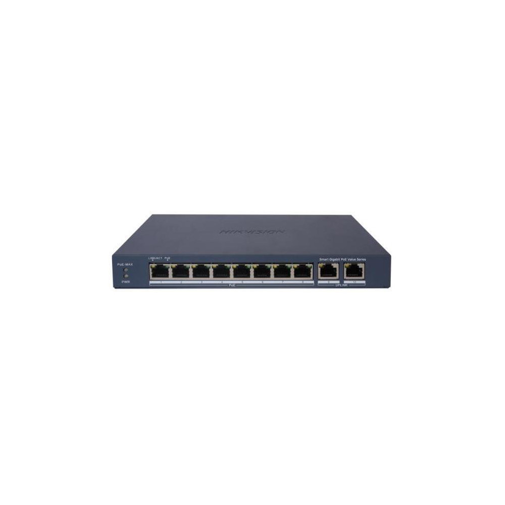 Hikvision DS-3E1510P-EI Smart managed switch 8x Gb/s PoE + 2x Gb/s Uplink RJ-45, 110W, Super PoE - dosah až 300m
