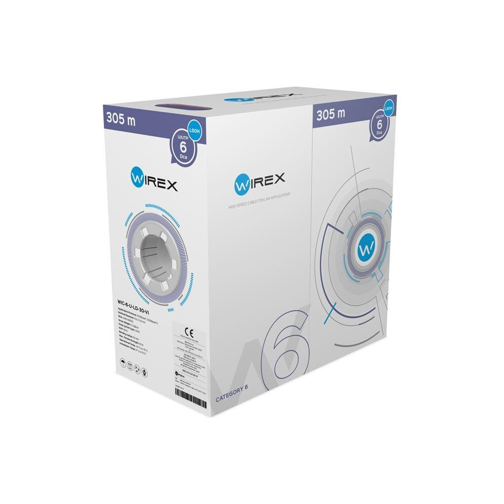 Instalační kabely WIREX se vyznačují vysokou spolehlivostí a stabilitou parametrů po celou dobu životnosti instalované metalické datové sítě. Zvládají nejnáročnější přenosové protokoly, které je možno dle standardů provozovat na kabelážích kategorie CAT6. Tento typ kabelu je možno instalovat v různých prostředích, jako jsou administrativní prostory nebo datová centra. Kabel je dodáván v barevném boxu, díky kterému je možno rychle rozpoznat, o jaký typ kabelu se jedná v případě instalace, kde se používá několik typů kabelů. Pro přehlednost je metráž kabelu značena od 0 m do 305 m.