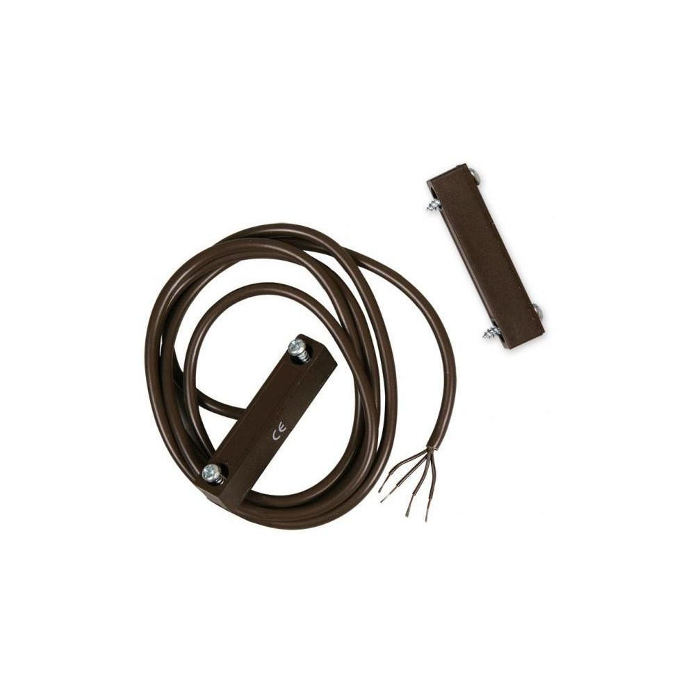 Čtyřdrátový magnetický kontakt, určený pro povrchovou montáž. rozměry 50x17x10mm kabeláž - 4 vodiče, délka cca 2m prac. vzdálenost max. 30 mm plastové provedení NC poplachový výstup NC tamper hnědá barva povrchová montáž, 2 otvory pro vruty