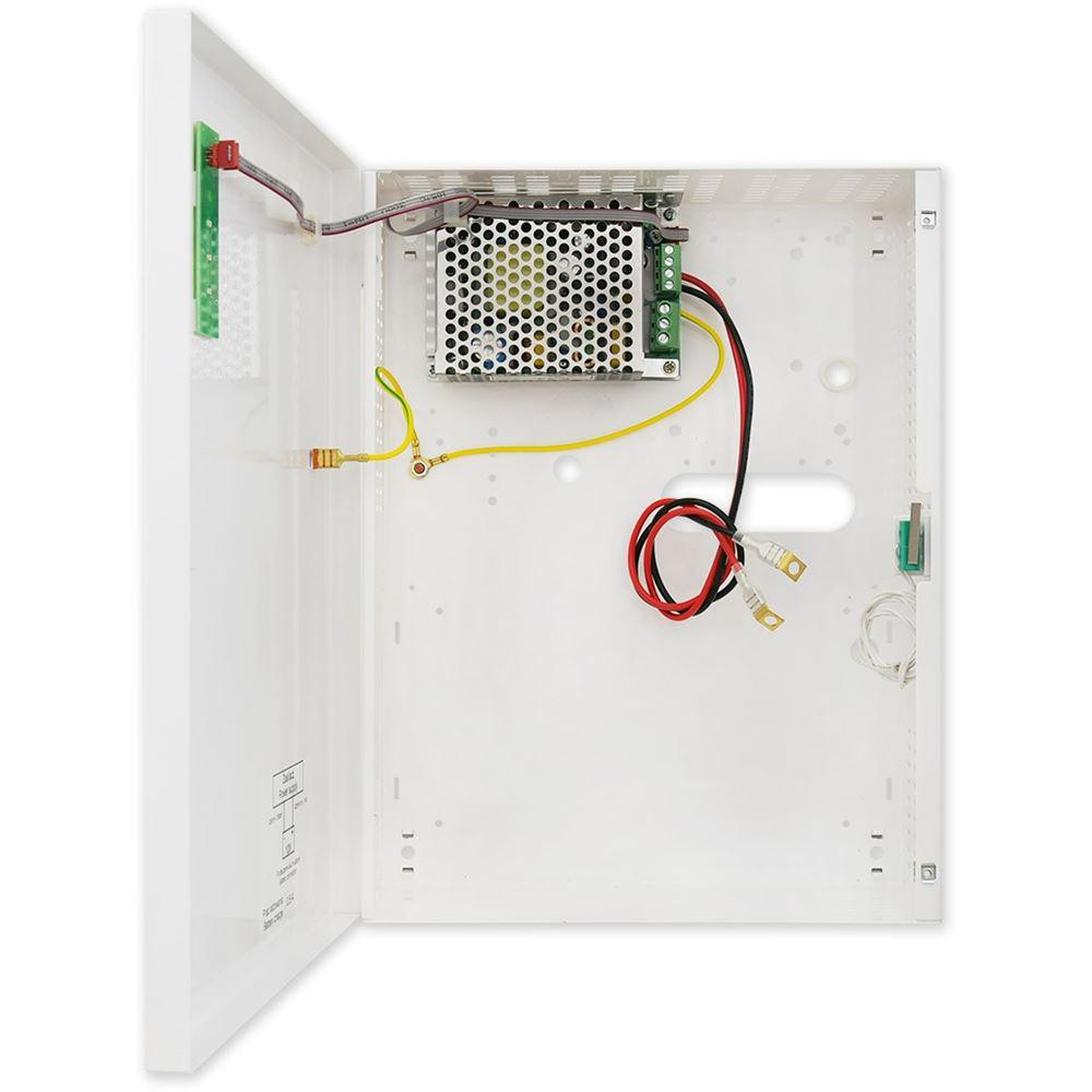 Pomocný zdroj v plechovém boxu s místem pro záložní akumulátor. Zdroj je v provedení AC/DC měniče, který se vyznačuje vysokou provozní odolností, vysokou účinností a minimálním ohřevem. Provedení je určeno pro použití v instalacích EZS, ale lze použít i v jiných případech, kde je potřeba zálohovaný zdroj 12 V